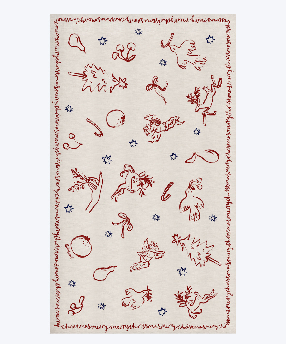Cherubs & Reindeer Linen Tablecloth